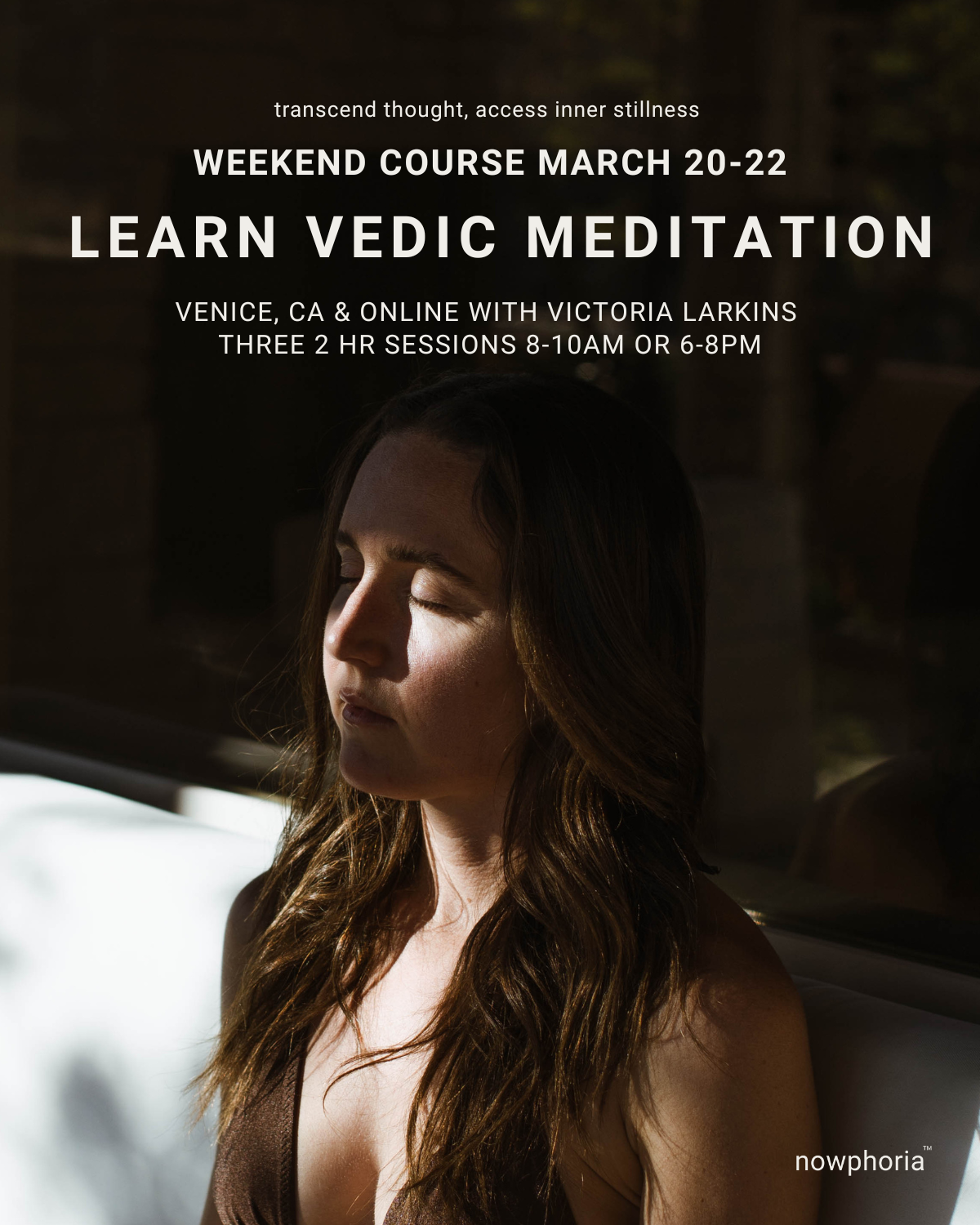Victoria Larkins is a Vedic Meditation teacher and the founder of Nowphoria. Her work exists at the intersection of ancient yogic knowledge, consciousness studies, and modern neuroscience. She specializes in the transition from thought-based living into presence—cultivating the state of awareness beneath the mind where clarity, coherence, and aligned action naturally arise.